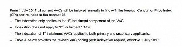 這意味著從今年7月1日起,所有的簽證費用將根據預測的消費者物價指數進行調整。簽證費每年都將按指數計算,并四舍五入至最接近的5澳元。這一指數化只適用于第一和第二申請人簽證費的首期付款,不適用于簽證費的第二期付款。