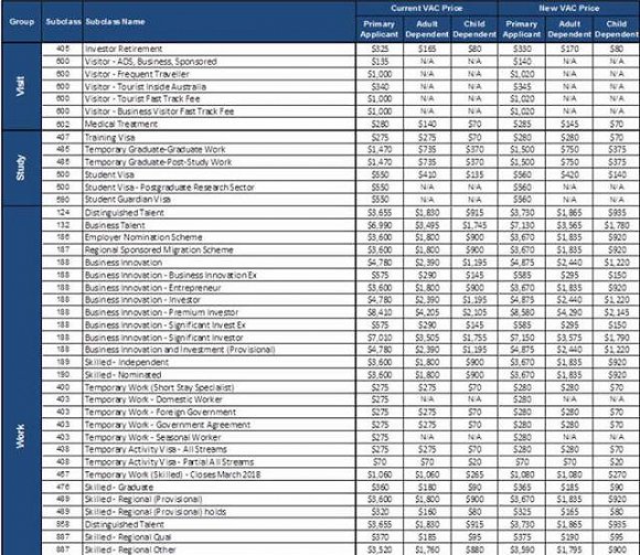 主申請人的學生簽證費將從550元漲至560元,未成年申請人的簽證費將從410元漲至420元。雇主提名(Employer Nomination)和次發(fā)達地區(qū)擔保移民計劃(Regional Sponsored Migration Schemes)的簽證費將漲價70元,從3600元漲至3670元。配偶簽證(Partner visa)費用將從6865元升至7000元。